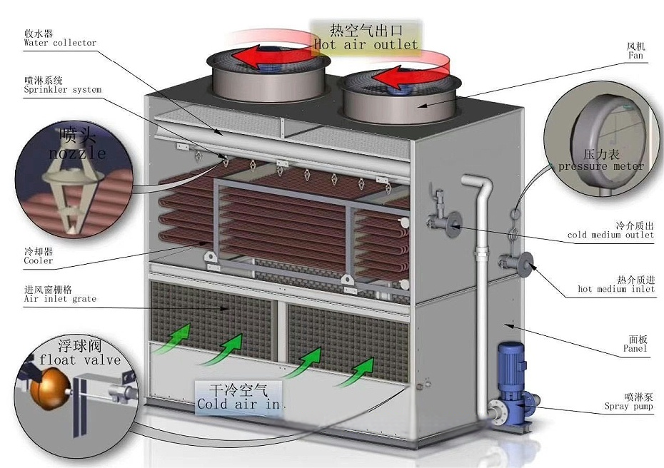 綠色材料應(yīng)用將成為技術(shù)突破重點(diǎn)。生物基填料、納米防腐涂層、再生塑料構(gòu)件等環(huán)保材料將逐步替代傳統(tǒng)材料,減少全生命周期碳排放。例如,四川金菱制冷科技有限公司開發(fā)的納米防腐涂層,使冷卻塔外殼耐腐蝕性能提升3倍,使用壽命延長(zhǎng)至20年。